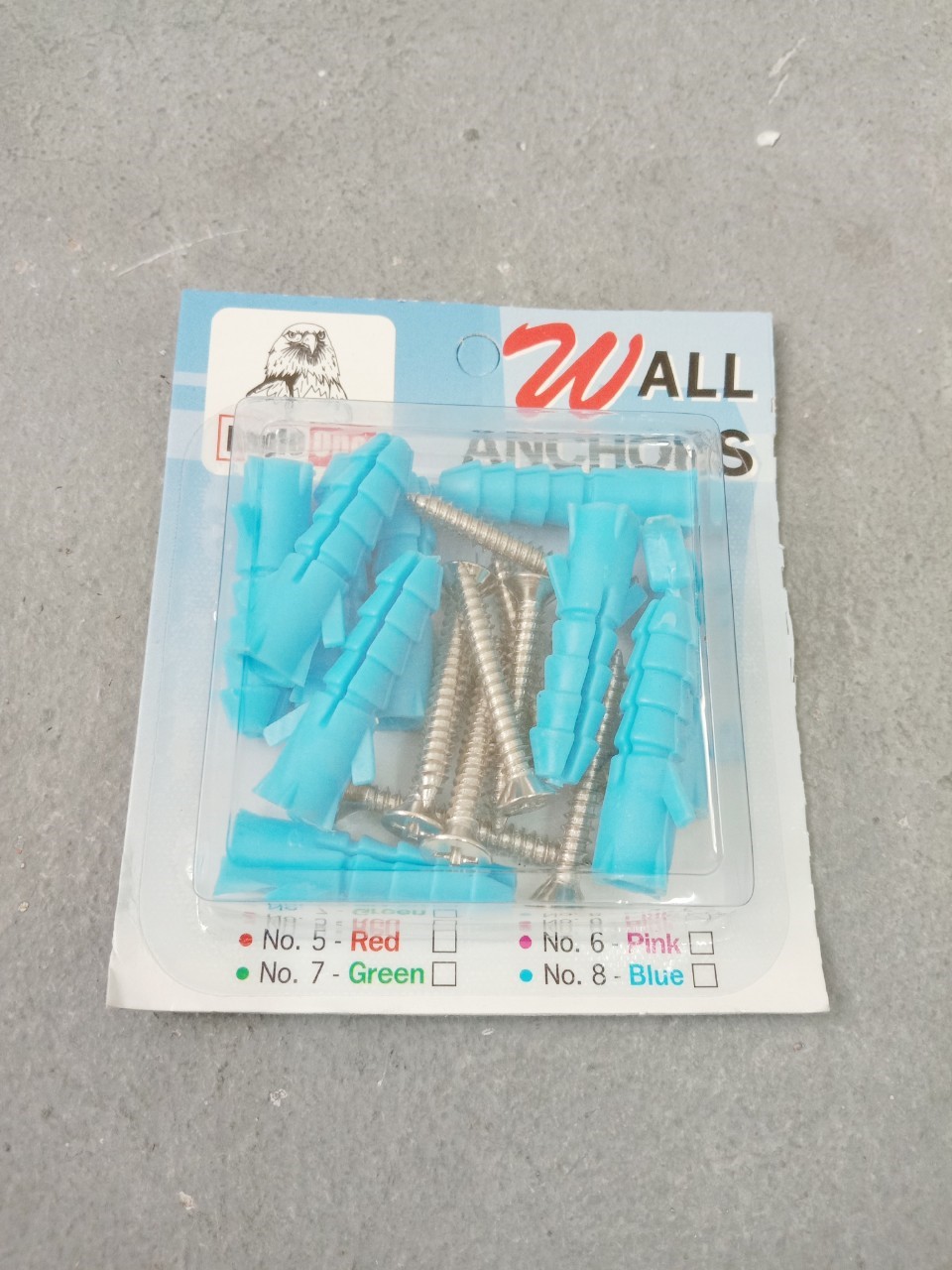 - พุ๊กพลาสติก พร้อมน็อต #5 สีแดง, #6 สีชมพู, #7 สีเขียว, #8 สีฟ้า