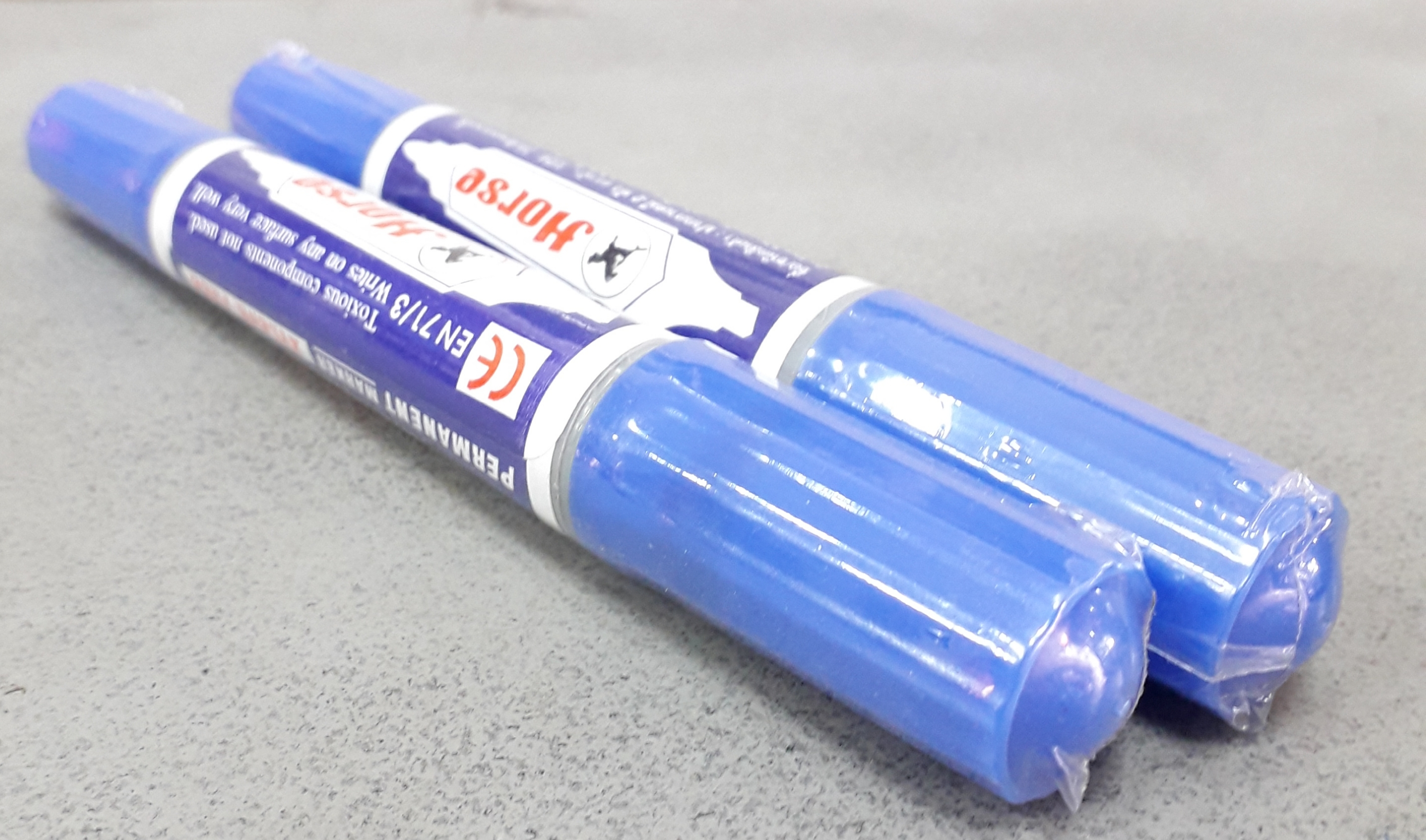 - ปากกาเคมี 2 หัว สีน้ำเงิน ตราม้า