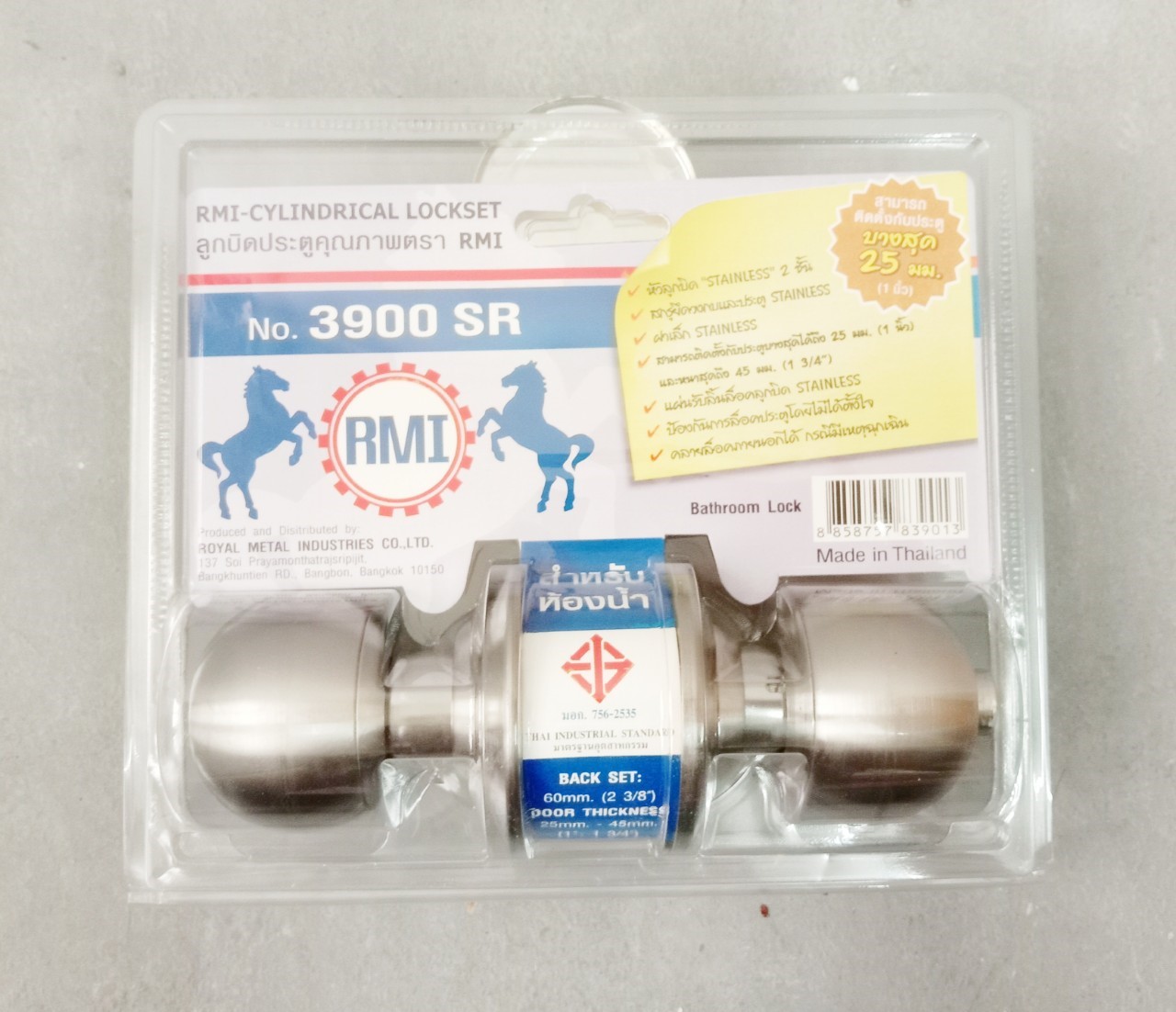 - ลูกบิดประตู RMI #3900 SR ห้องน้ำ กลมด้าน